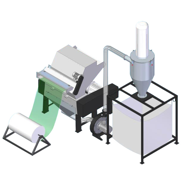 適用于熱成型,紙杯,環(huán)保餐盒,吸塑包裝等成型機尾端,用作網狀余料的在線粉碎,輸送,儲存。